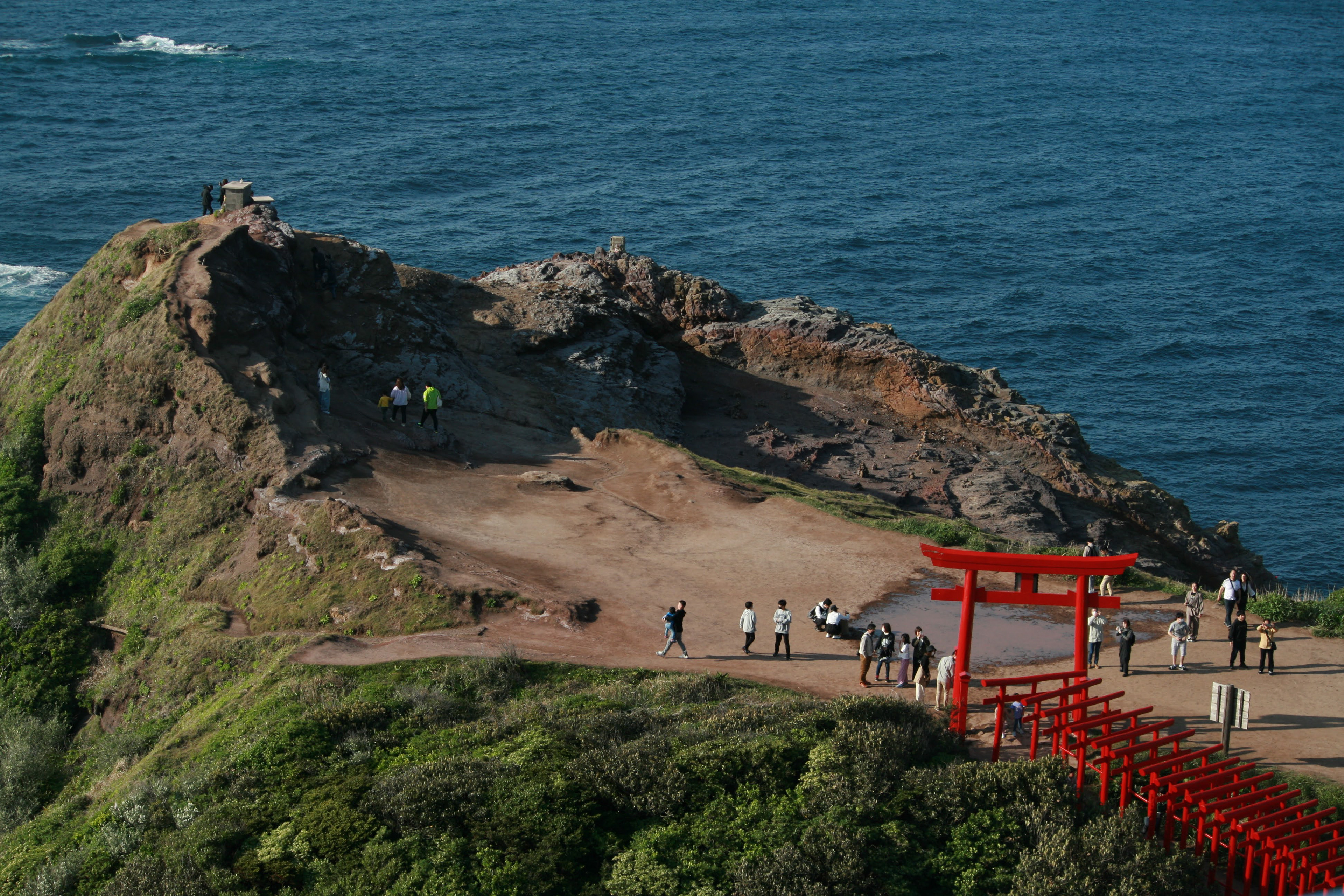 2. Motonosumi Shrine was also striking with its 123 crimson tori gates, lined together to form a tunnel out onto the ocean-facing cliffs. I spent a little too much time trying to get my 10-yen offering into the offering box that sat not under, but on top of the first tori gate. Hiromi-san and Nan-Chan got their coins in quickly, but I took so long and essentially just accepted the fate of my coin landing not into the box, but actually on top of the tori itself. Maybe this calls for some extra luck.